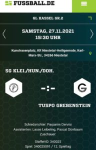 Das letzte Pflichtspiel des Jahres unserer 1. Mannschaft findet morgen um 15:30 Uhr gegen die SG Kleinalmerode/Hundelshausen/Dohrenbach auf dem Kunstrasenplatz in Heiligenrode statt !